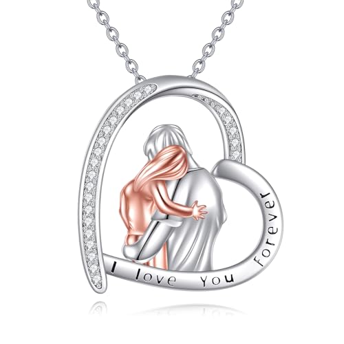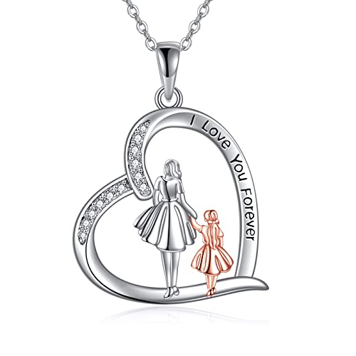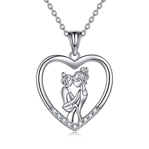 YAFEINI Gifts for Mum 925 Sterling Silver Mother and Daughter Necklace Mother's Day Birthday Pendant Jewellery for Mum Women (mother and daughter 1)
