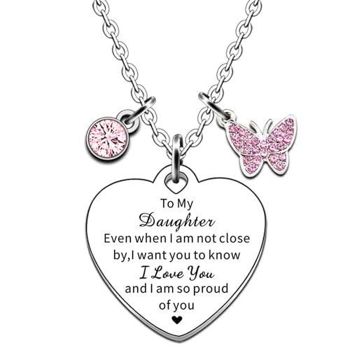 JMIMO Daughter Necklace Charm Daughter Birthday Gifts Christmas Graduation Gifts from Dad Mum - I Love You And I Am So Proud Of You Presents