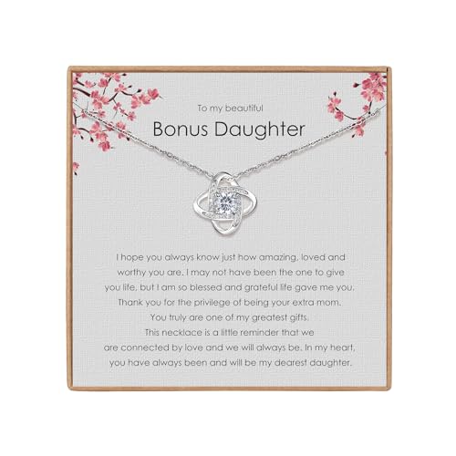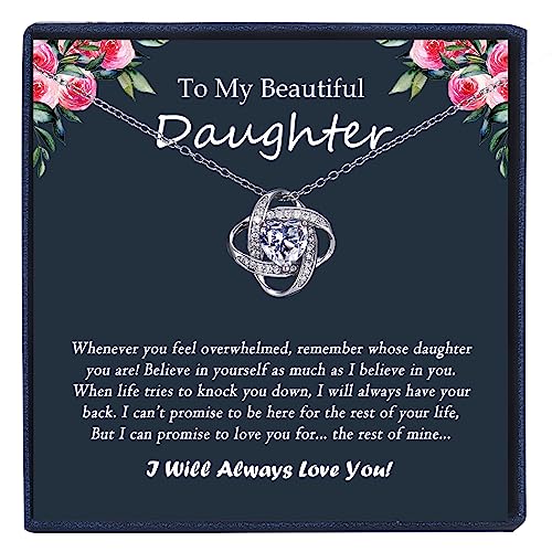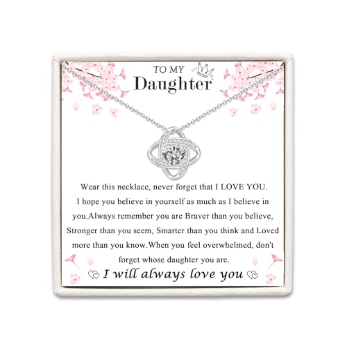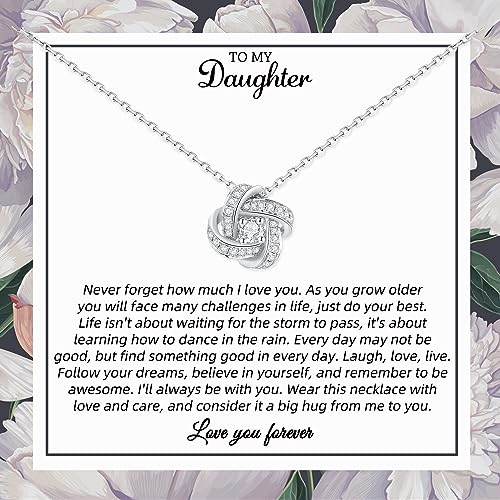 Famdecor Bonus Daughter Necklace Daughter in Law Gifts Rhinestone Knot Sterling Silver Necklace Birthday Christmas Gifts