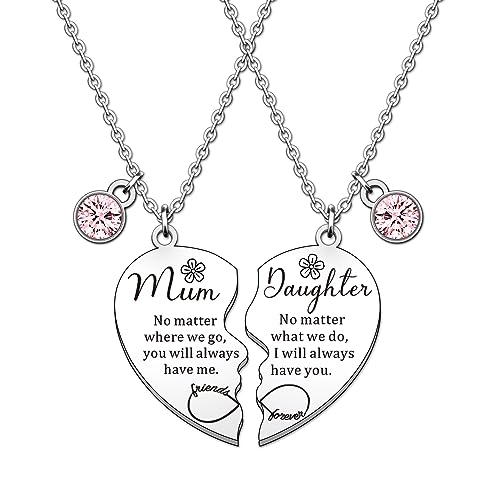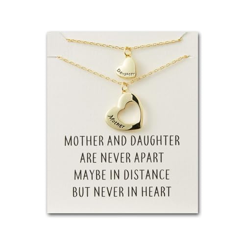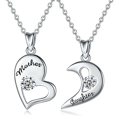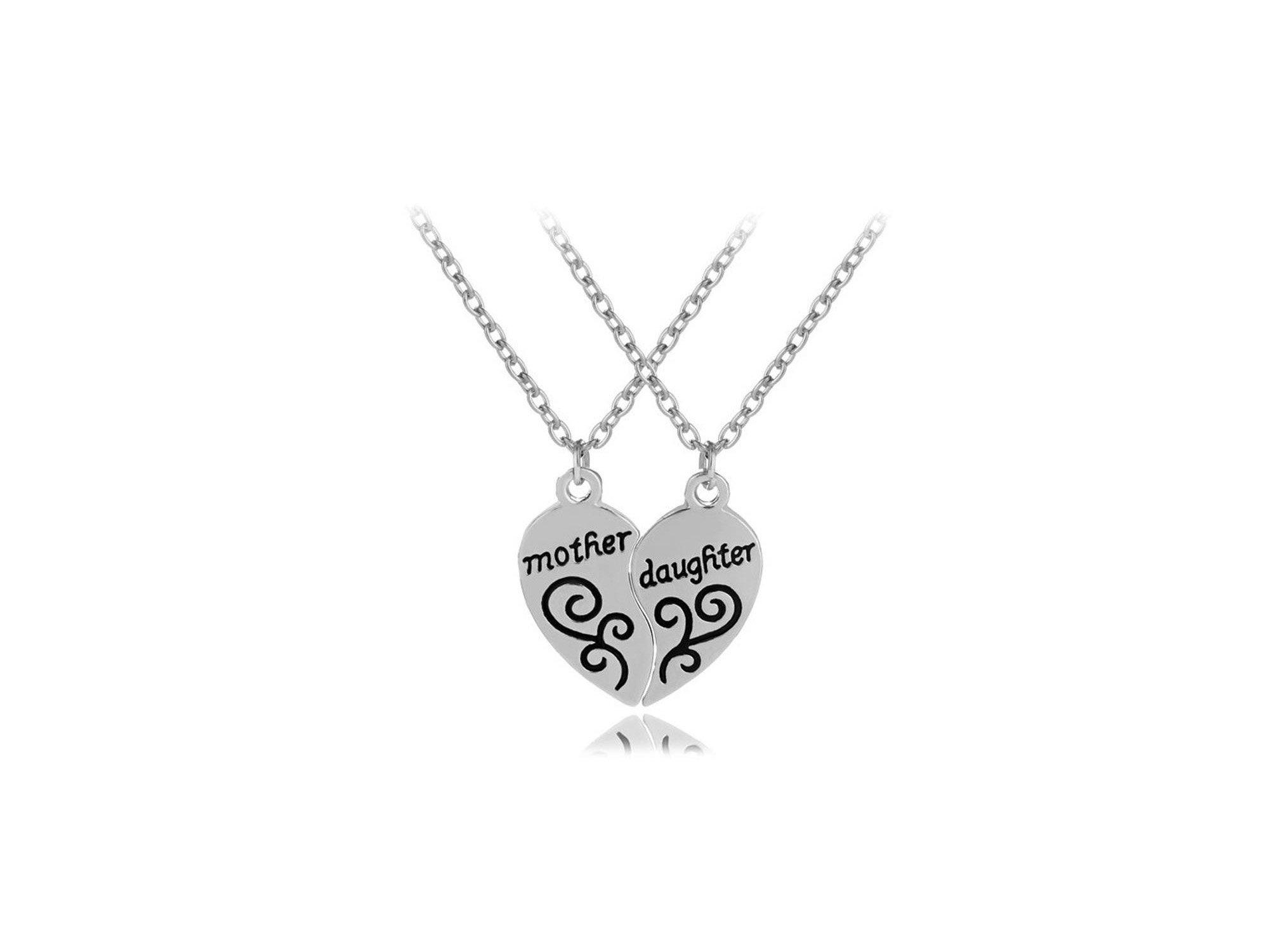 HULALA 2 Pcs Mother Daughter Heart Matching Necklace Set Gifts For Mum Mothers Day Birthday Christmas Presents From Daughter