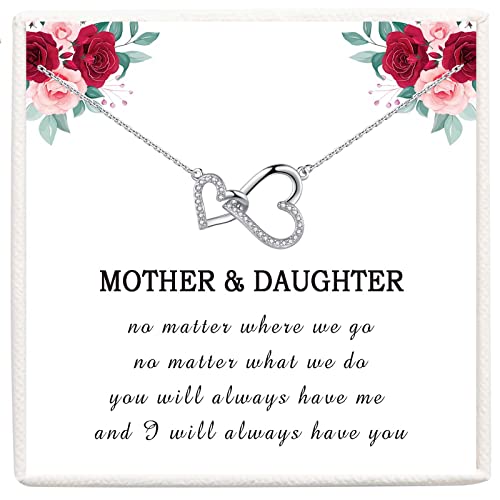 Mum Gifts Mother Daughter Necklace - Silver Interlock Love Heart Pendant Necklaces for Women Girls, Daughter Birthday Gift from Mom, Women Necklace Birthday Mother's Day Jewellery Gifts for Mum