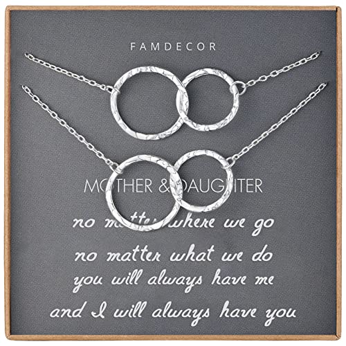 Famdecor Mothers Day Gifts for Mum and Daughter Necklace Set for 2 Gifts for Mum Gifts for Daughter Sterling Silver 2 Circle Hammered Necklace for Women Christmas Gifts