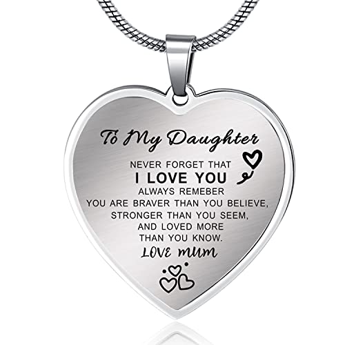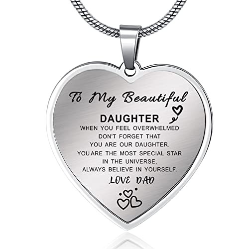 MADHAHEFU Daughter Heart Pendant Necklace From Dad Mum Inspirational Gifts Jewelry Presents Special Necklace Birthday Gift For Daughter