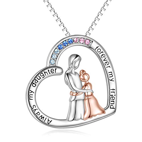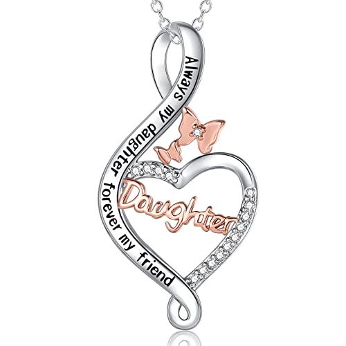 Daughter Necklace, 925 Sterling Silver Necklace for Women "Always My Daughter Forever My Friend" Love Heart Pendant Jewellery Birthday Gifts for Her