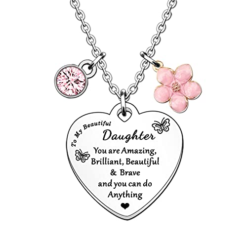 HULALA Daughter Necklace Gifts For Women Girls Birthday Christmas Love Heart Crystal Charms Granddaughter Jewellery You Are Amazing Brilliant Beautiful Brave And You Can Do Anything