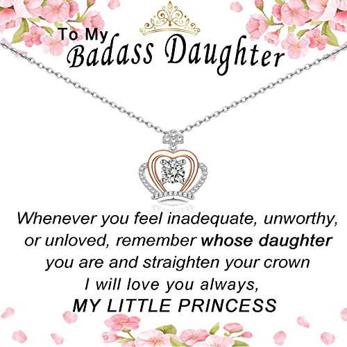 VOSAP Daughter Gifts, Daughter Necklace Sterling Silver Crown Jewellery Present from Mum Dad, Cute Christmas Birthday Gifts for Women Girl
