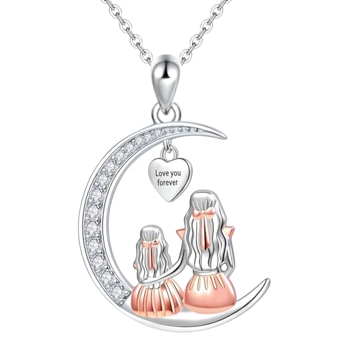 jagosen Mum Gifts Sterling Silver Mother Daughter Necklace Cubic Zirconia Moon Necklace Birthday Mothers Day Love You Forever