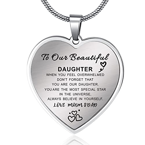 YOTHIWAD Daughter Necklace From Mum Dad, To My Daughter Necklace, Inspiration Heart Pendant Necklace Birthday Graduation Gifts from Mum Dad(Silver) (TXS1001)