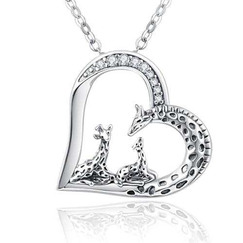 praymos Valentines Day Gifts for Her Giraffe Silver Necklace for Women Giraffes Gifts Pendant Necklace Mothers Day Gifts for Mum Daughter Family Necklace