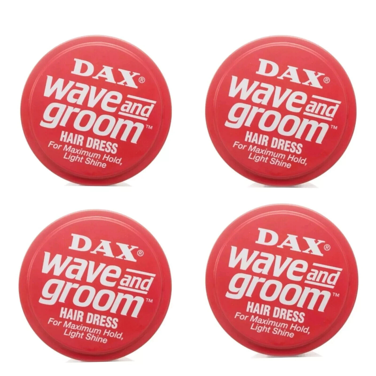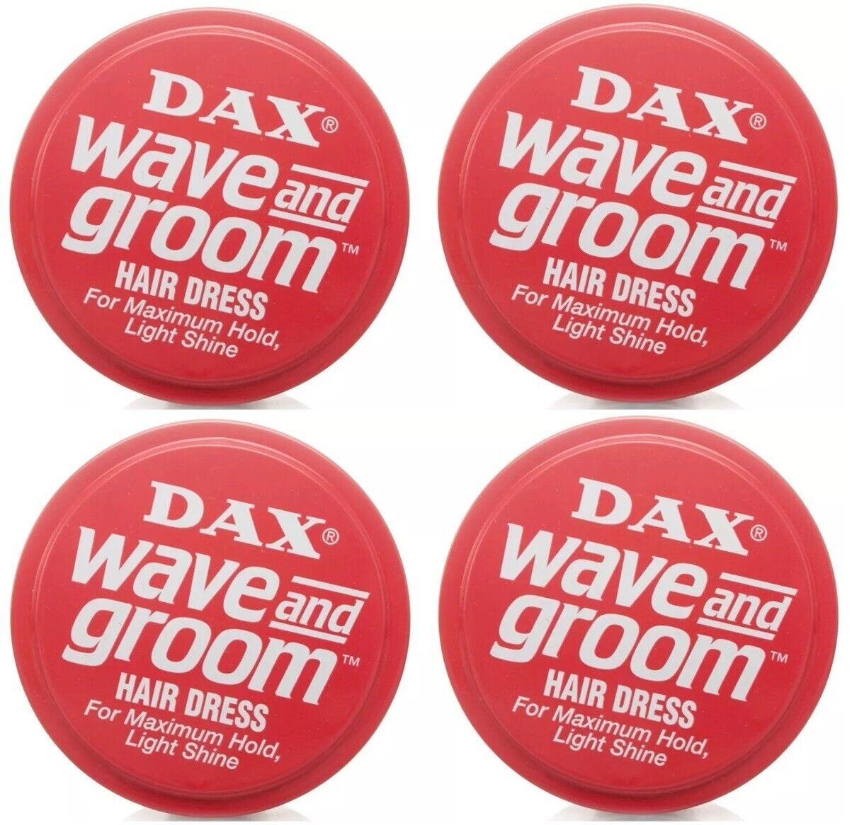 4 X Dax Wax Red Wave and Groom Hair dress For Maximum hold, light shine 99g Tin.