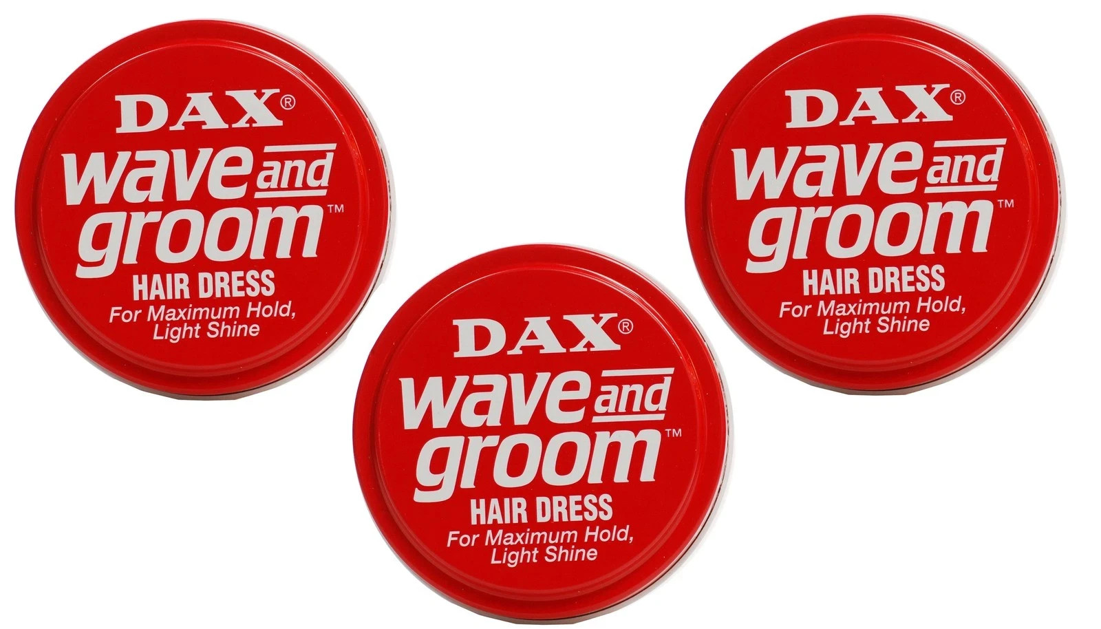 3 X Dax Wax Red Wave and Groom For Maximum hold, light shine 99g Tin (Pack of 3)