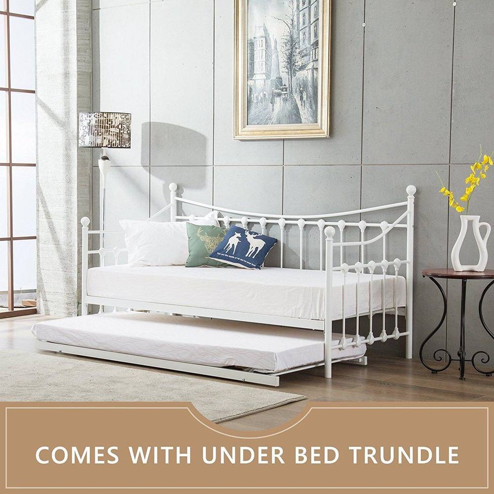 Jtyca Velvet Day Bed, Upholstered Single Sofa Bed with Trundle Bed, 3FT-90x190 CM, Grey, No Mattress