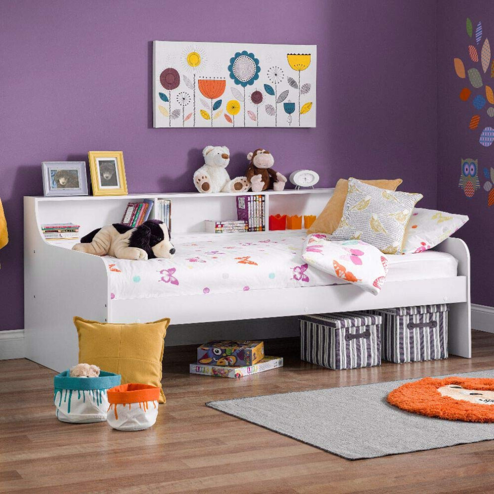 Wooden Daybed, Happy Beds Grace White Wood Modern Day Bed Frame - 3ft Single (90 x 190 cm) with Orthopaedic Mattress Included