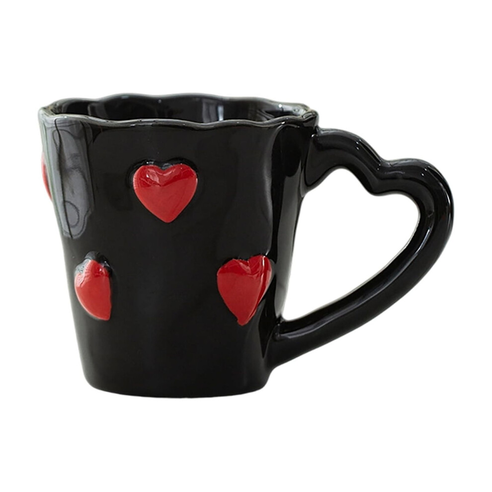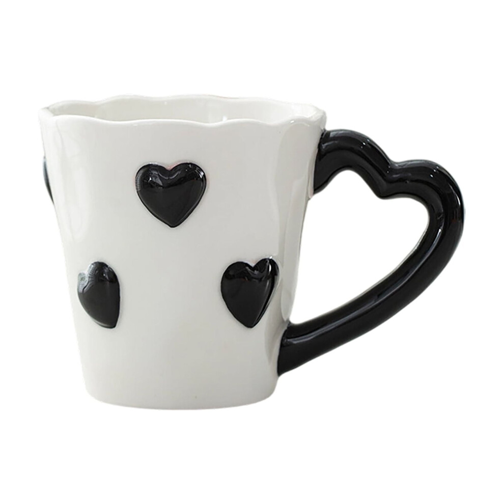 Ceramic Coffee Mug Elegant 3D Heart Shaped Embossed Teacup with Artistic Handle for Anniversary Birthday Valentine's Day Gift for Your Mother Black