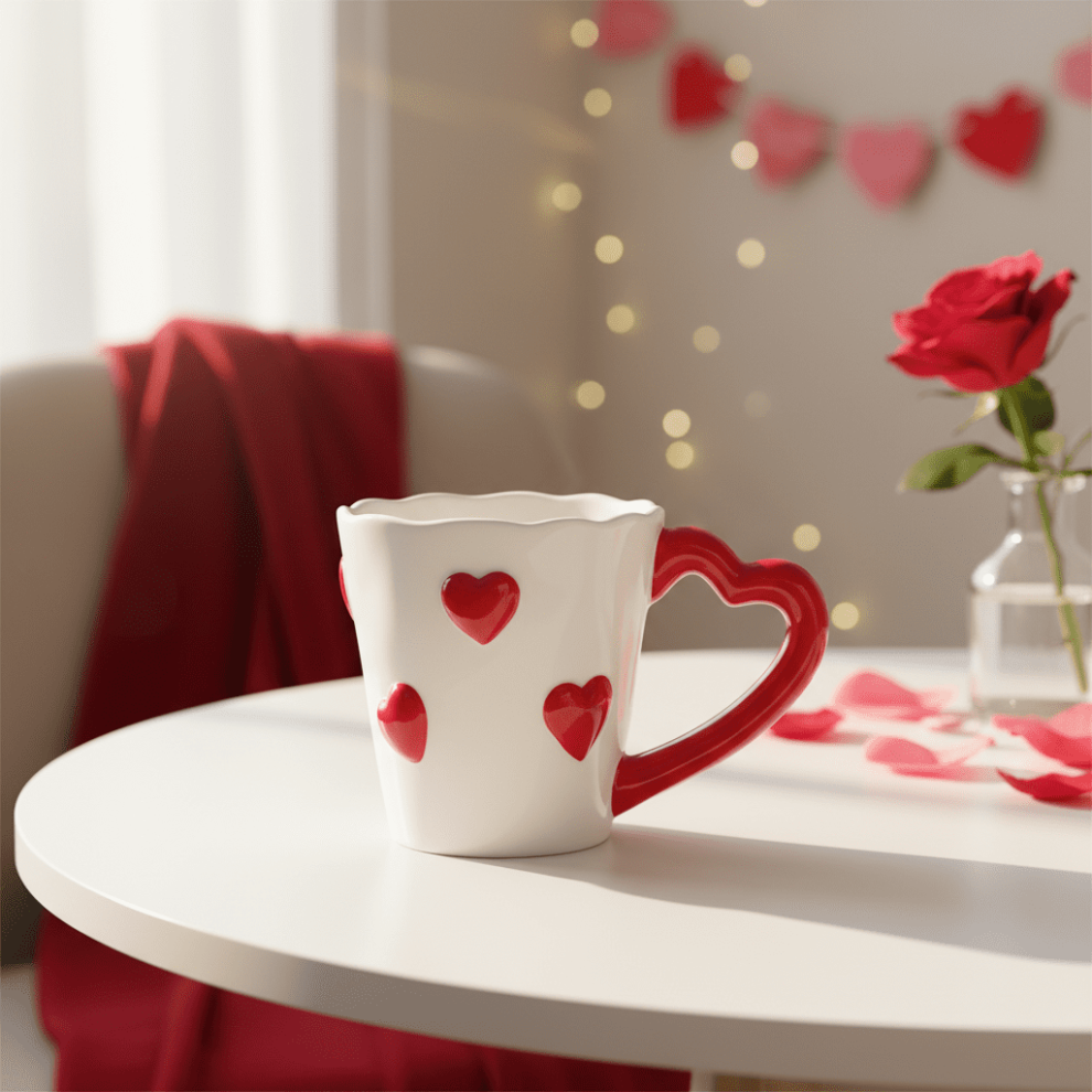 Ceramic Coffee Mug Elegant 3D Heart Shaped Embossed Teacup with Artistic Handle for Anniversary Birthday Valentine's Day Gift for Your Mother Red