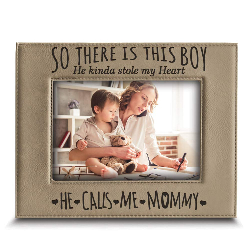 BELLA BUSTA- So There is This Boy he Kinda Stole my Heart He Calls me Mommy-Mommy and Me-Mother's Day Gift-Mother and Son-Engraved Leather Picture Fra