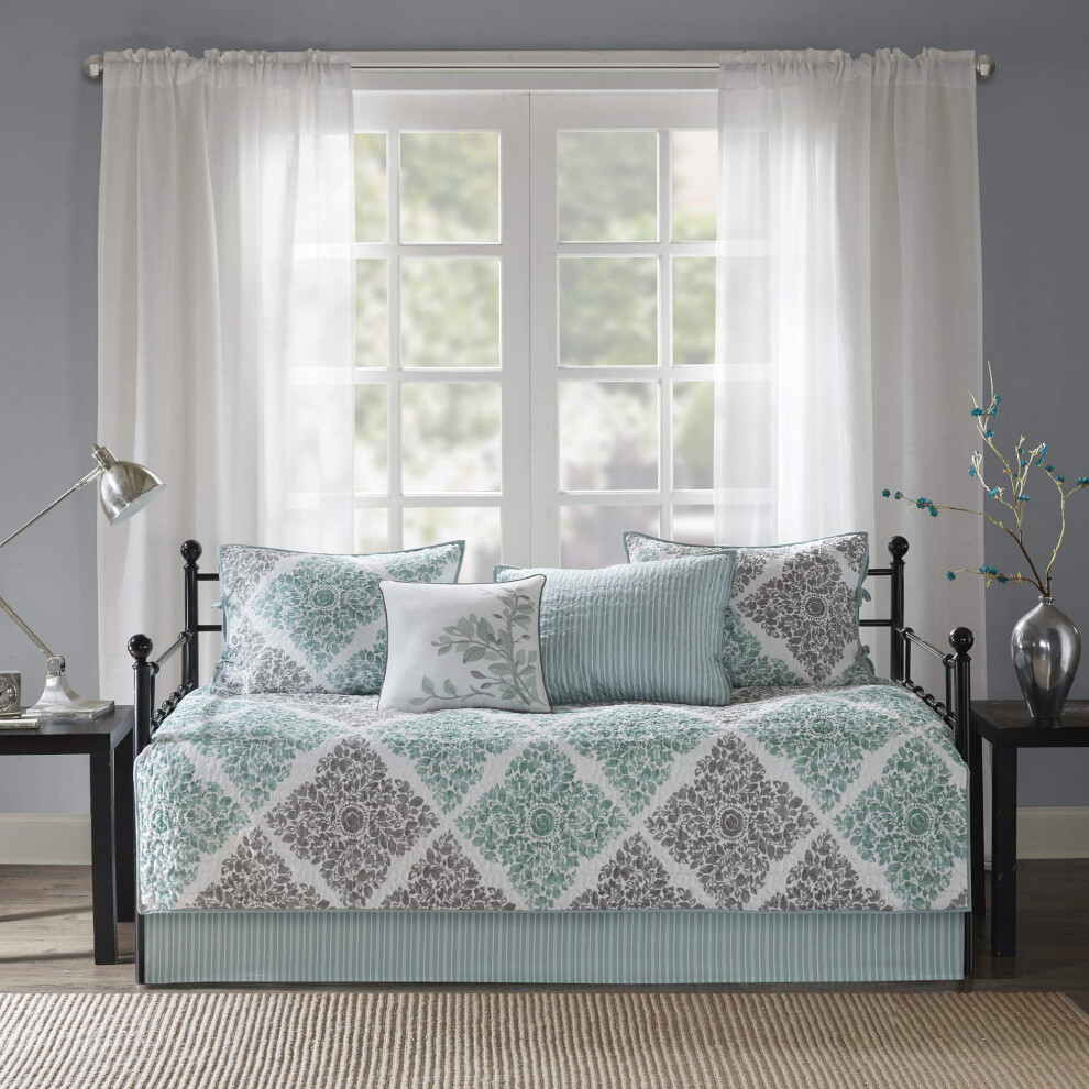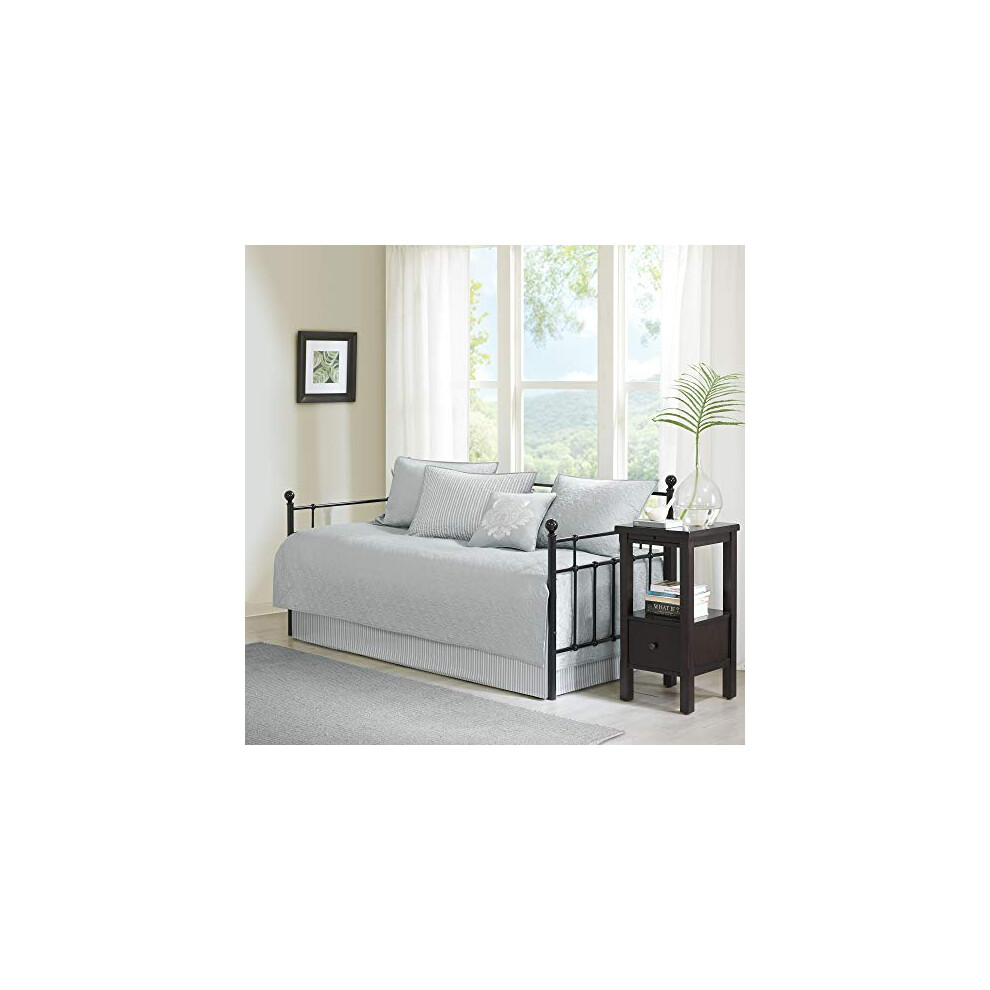 Madison Park Cotton Daybed Cover Set-Double Sided Quilting Classic Cottage Design All Season Bedding with Bedskirt, Matching Shams, Decorative Pillow, 75"x39", Quebec Grey 6 Piece