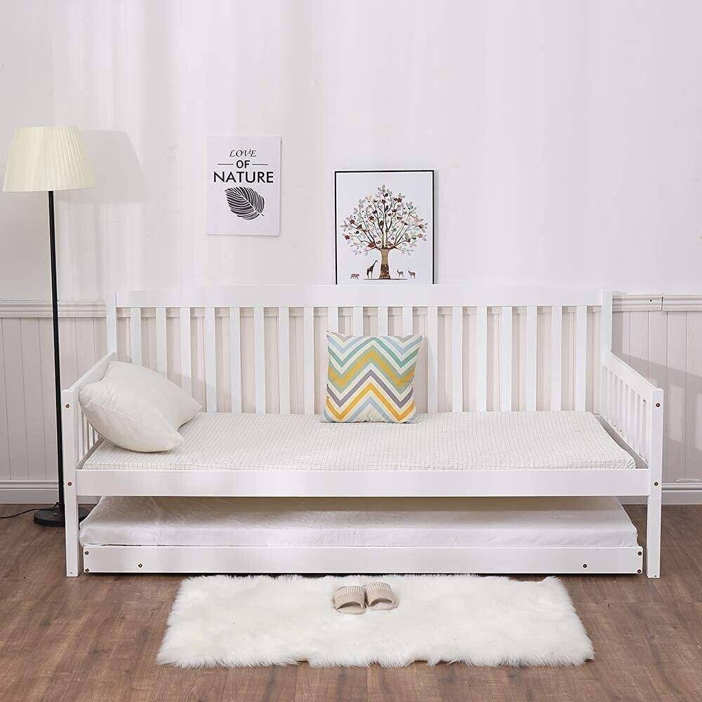 ZYLOYAL10 Wooden Daybed, Solid Guest Cabin Sofa Bed, Pull out Trundle and Storage Drawer for Living Room and Bedroom (3') 90 x190 cm, White