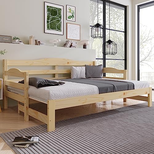 Owoxanthellate Day bed 140x200cm Solid Pine Wood Daybed Frame Sofa Bed Guest Bed for Living Room Bedroom Home Office