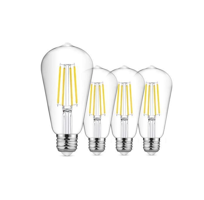 8W Vintage Filament Clear Glass Light Bulb E27, Daylight 6500K, Pack of 4