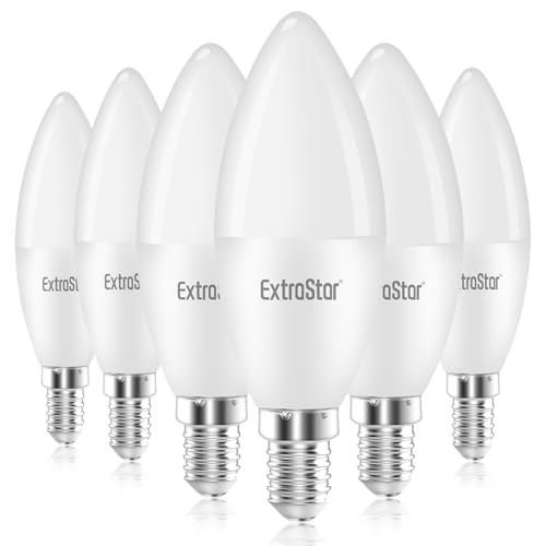 EXTRASTAR E14 LED Candle Light Bulbs, 6W SES Cool White 6500K Daylight Energy Saving Bulb, 42W Equivalent, Small Edison Screw C37 Light Bulb, 510LM, Non-Dimmable, Pack of 6