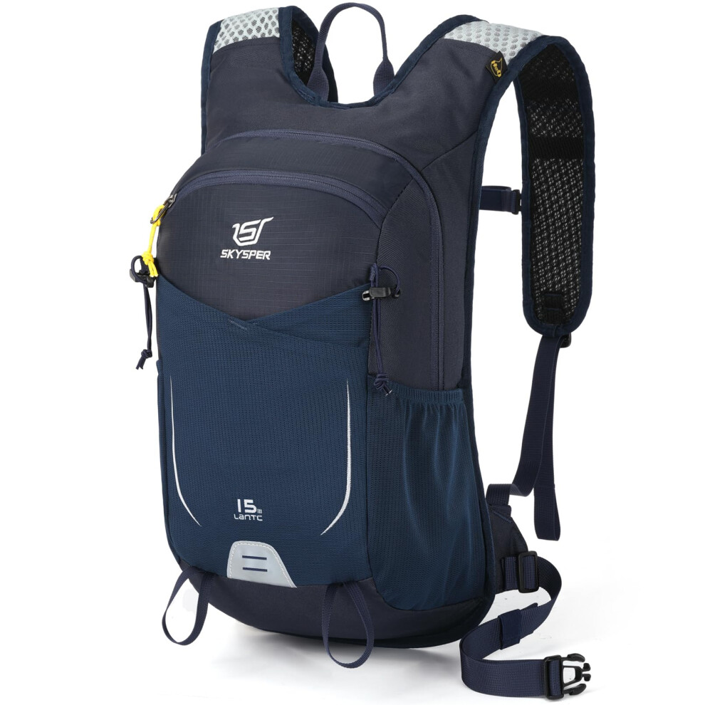 SKYSPER 15L Hiking Backpack Small Travel Daypack Breathable Lightweight Day Hike Rucksack with Shoulder Pocket Women Men(Navyblue)