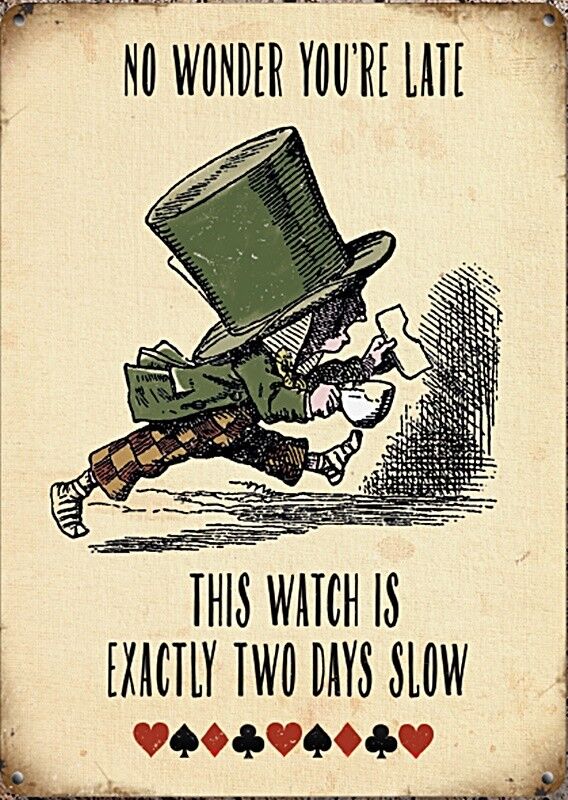 No Wonder You're Late, Watch Two Days Slow, Alice In Wonderland Small Metal Sign
