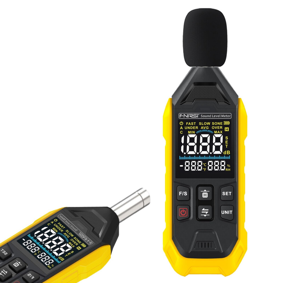 Digital Decibel Meter 30130dB Handheld Sound Level Meter with LCD Display Temperature Humidity