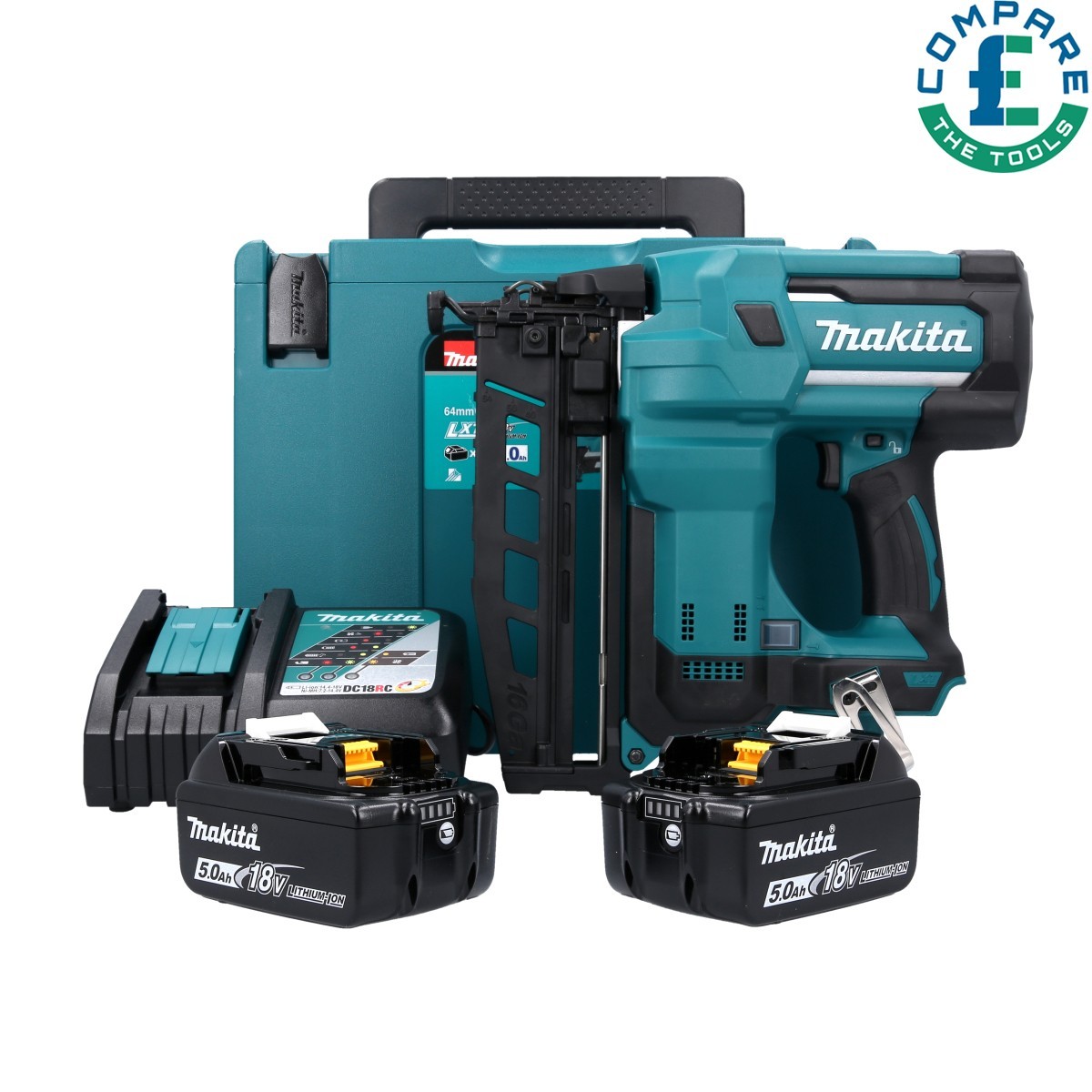 Makita DBN600RTJ 18V LXT Cordless Second Fix Straight Nail Gun with 2x 5.0Ah Batteries