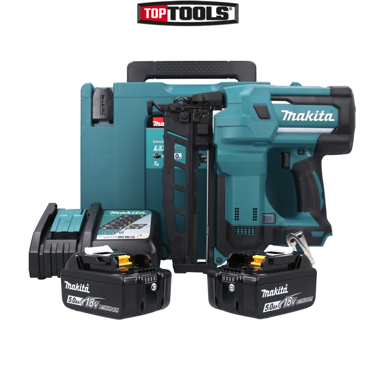 Makita DBN600RTJ 18V LXT Finishing Nailer + 2 x 5.0Ah Batteries, Charger & Case