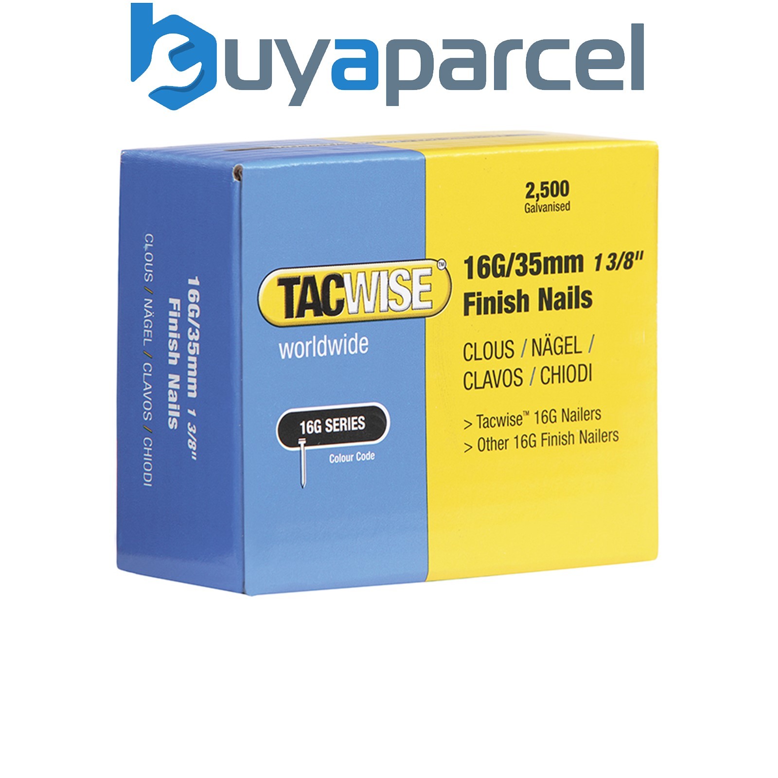 Tacwise 0296 16G 38mm Finish Nails Galvanised 2500 Pack DBN600ZJ DFN50V GFN64V