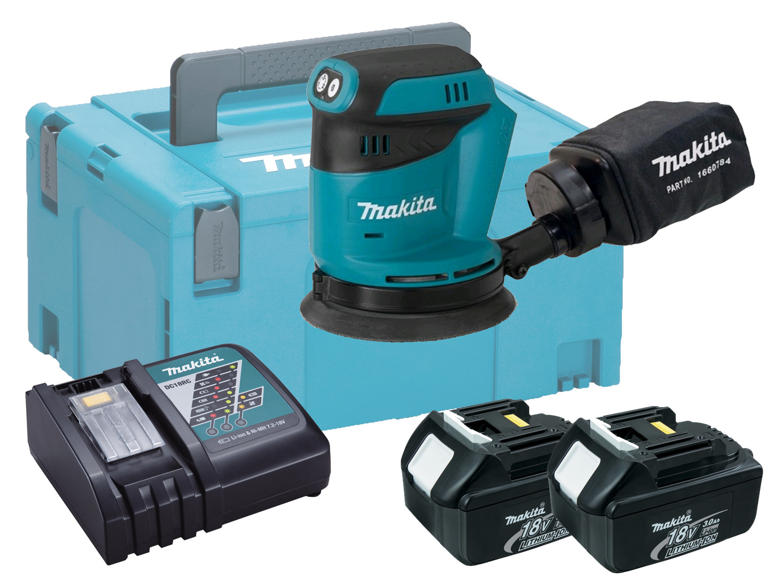 Makita DBO180Z 18V Li-ion Random Orbit Sander With 2 x 6Ah Batteries