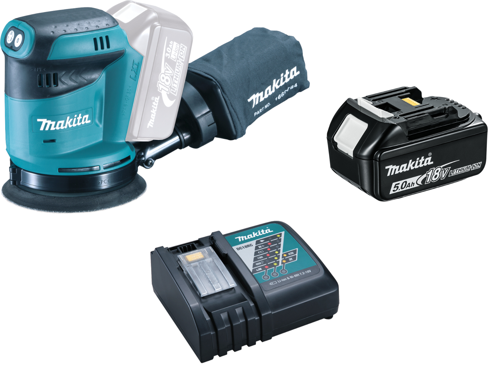 Makita DBO180Z 18V Li-ion Random Orbit Sander Body + 1 x 5Ah Battery & Charger