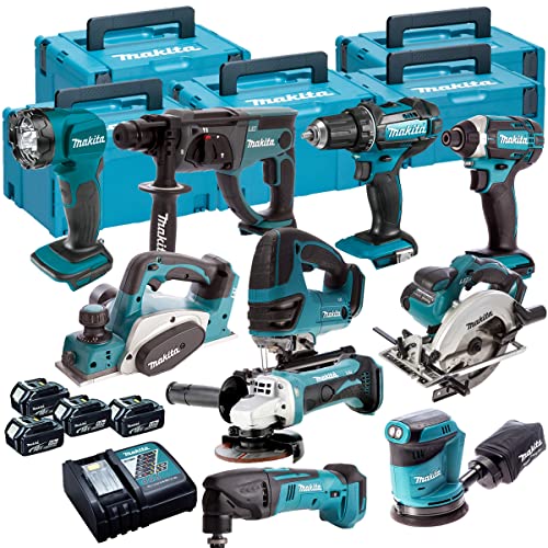 Makita 18V T4TKIT-84 LXT Cordless 10pcs Monster Kit with DHP482 + DTD152 + DJV180 + DSS611 + DKP180 + DHR202 + DGA452 + DBO180 + DTM50 + DML815 4 x 5.0AH BL1850 Batteries, DC18RC Charger & Case