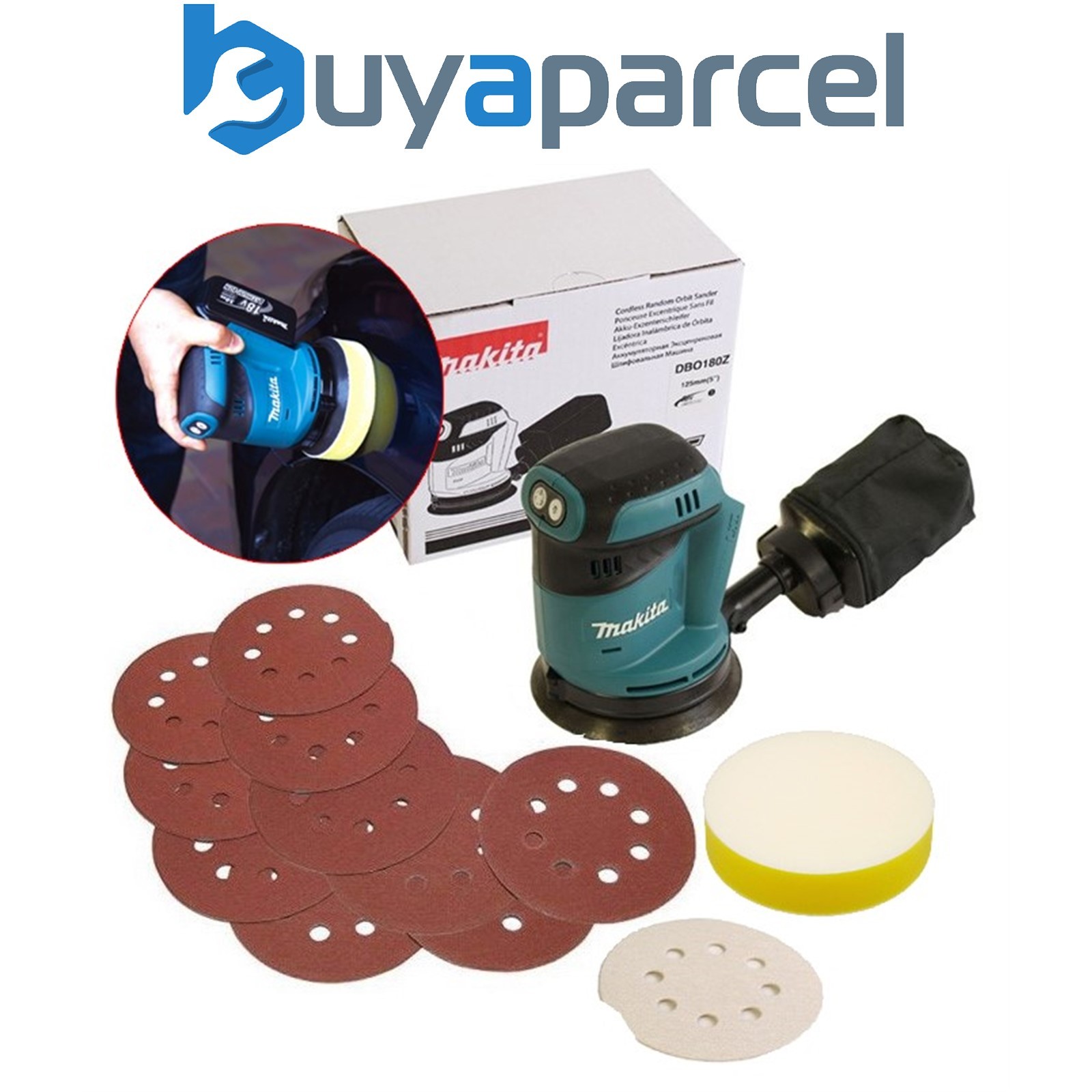 Makita DBO180Z 18v LXT Random Orbital Polisher Sander 125mm + 10 Sheets + Pad