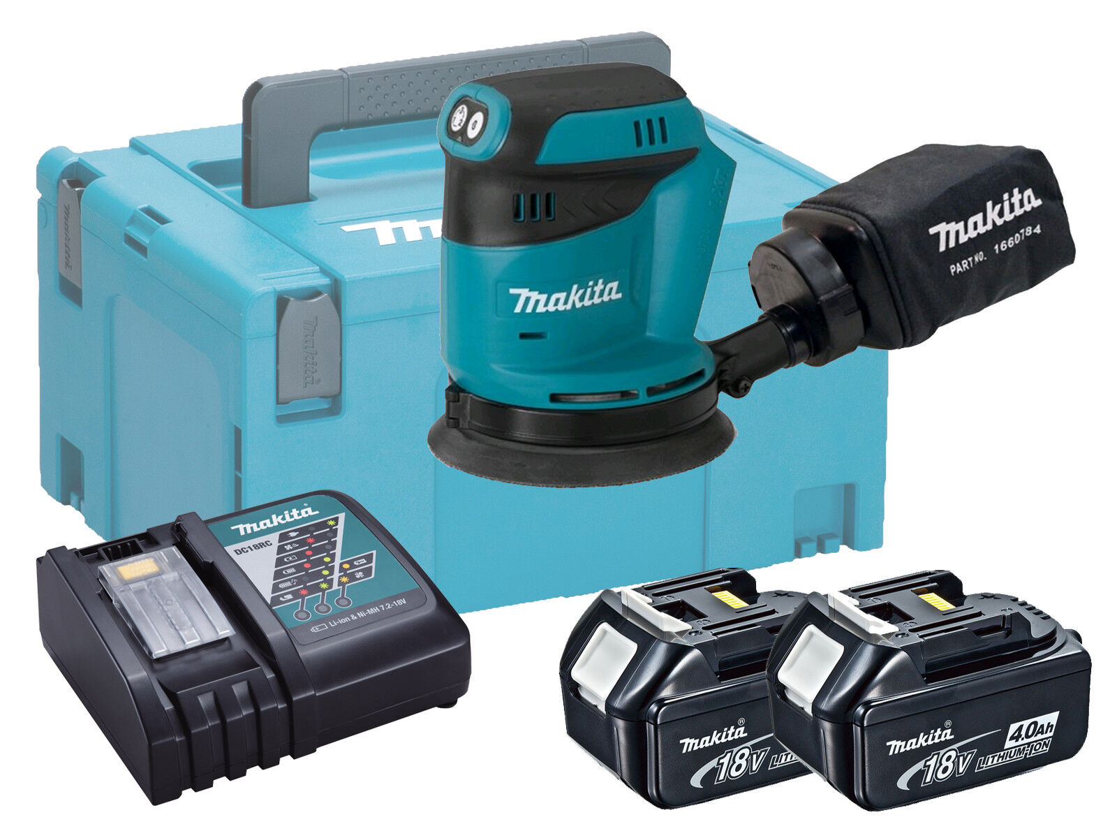 Makita DBO180Z 18V Random Orbit Sander + 2 x 5Ah Batteries, Charger & LXT400 Bag