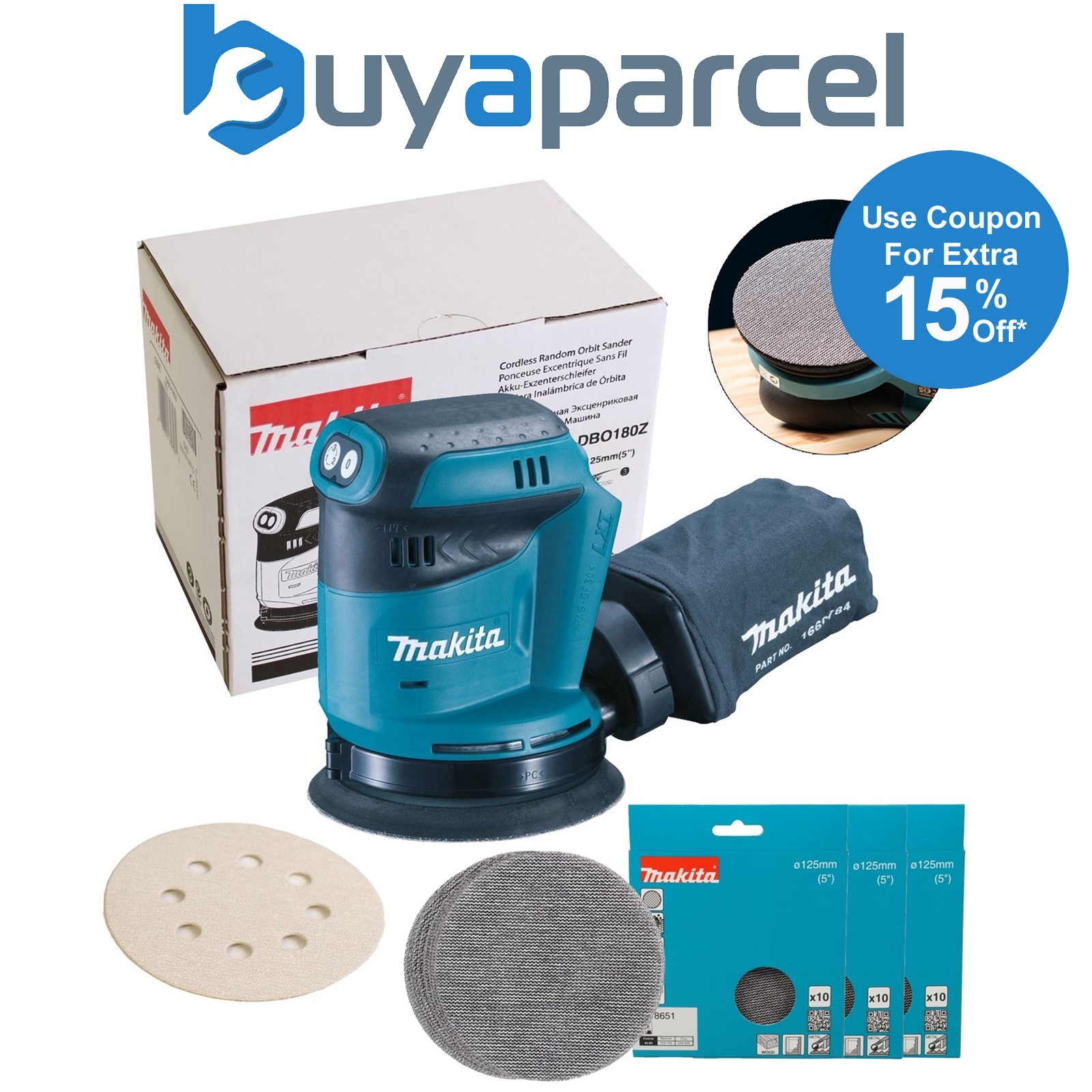 Makita DBO180Z 18V Random Orbit Sander With 30 x A80+A120+A180 Sanding Disc