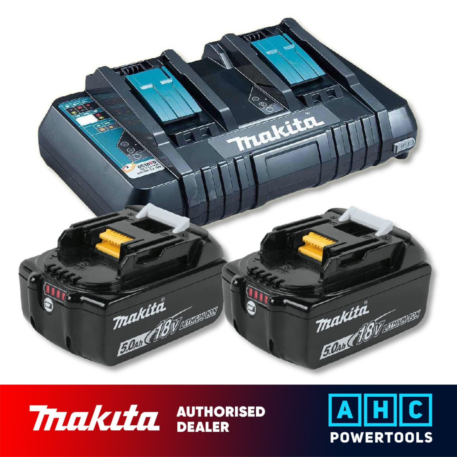 Makita DC18RD Dual Charger with 2 x BL1850B 5.0ah Li-Ion Batteries Kit Genuine