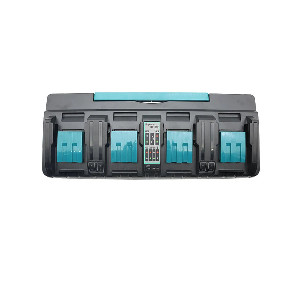 High-Efficiency DC18SF Quad-Port Li-Ion Battery Charger for Makita 14.4V-18V Models: BL1830, BL1430, DC18RC, DC18RA, DC18RD, DC18RT, DC18RF, BL1815,