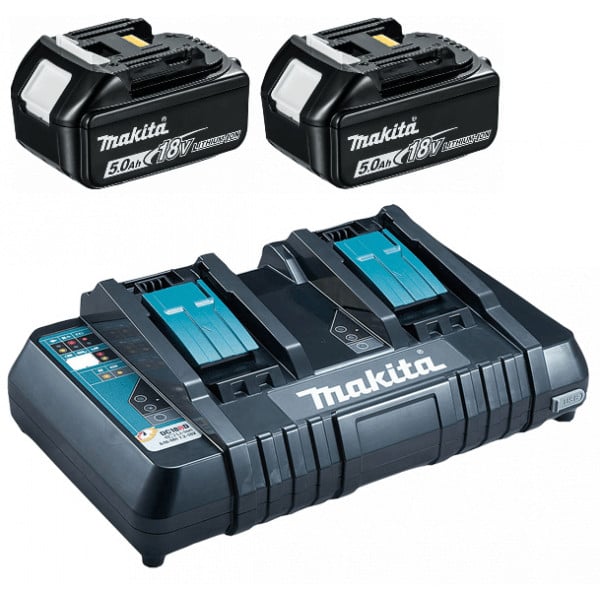 Makita BL1850 18V 2 x 5.0Ah Battery with DC18RD Dual Port Charger