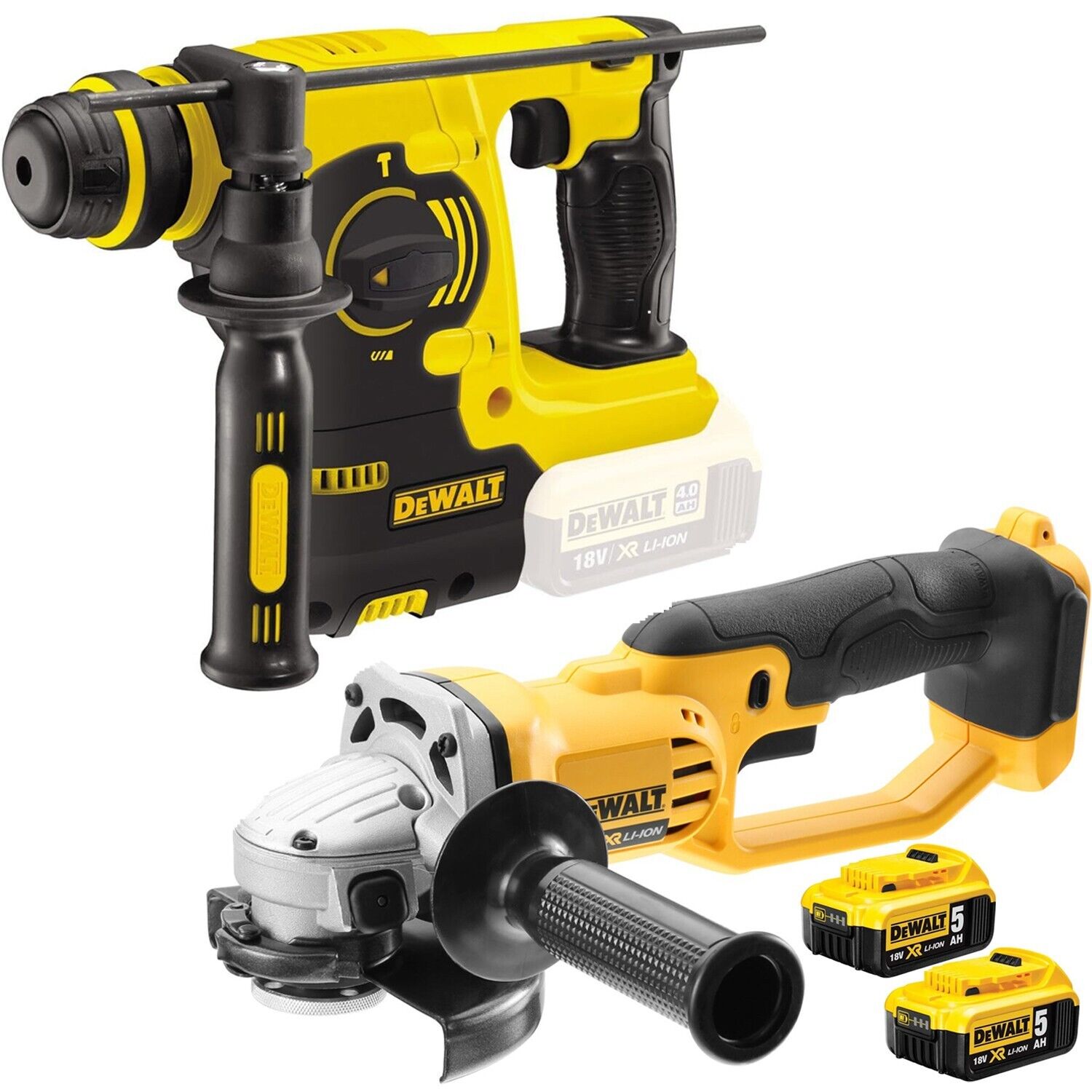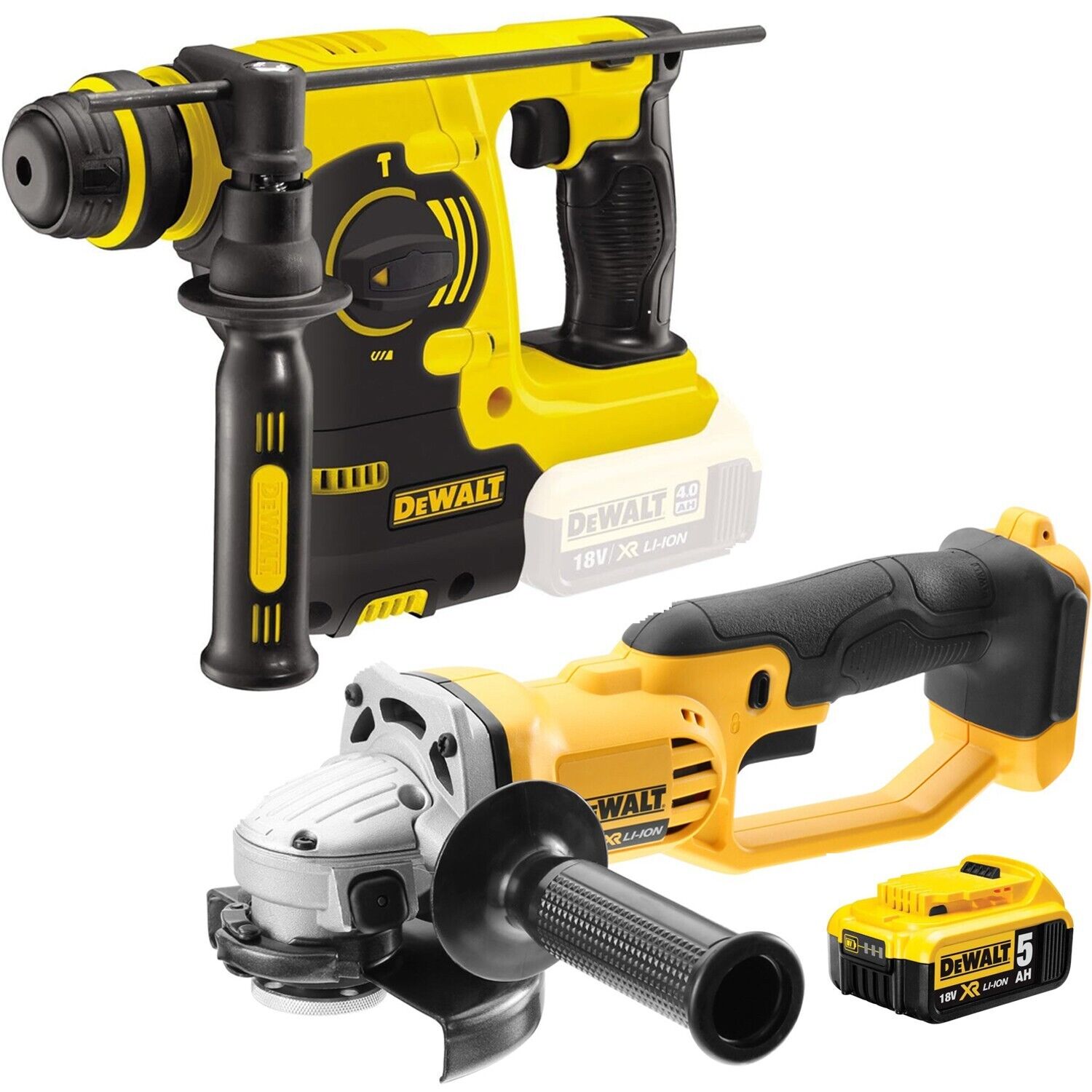 DeWalt 18V XR 125mm Angle Grinder,24mm SDS+ Hammer Drill With Li-Ion 5Ah Battery