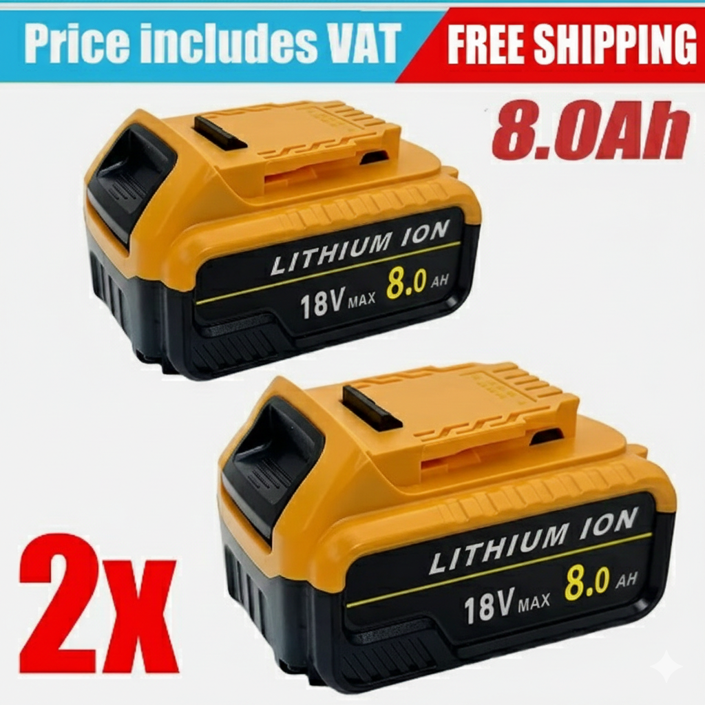 2 Pack 8.0Ah Replacement Battery for DEWALT DCB184 18V XR Li-Ion Slide