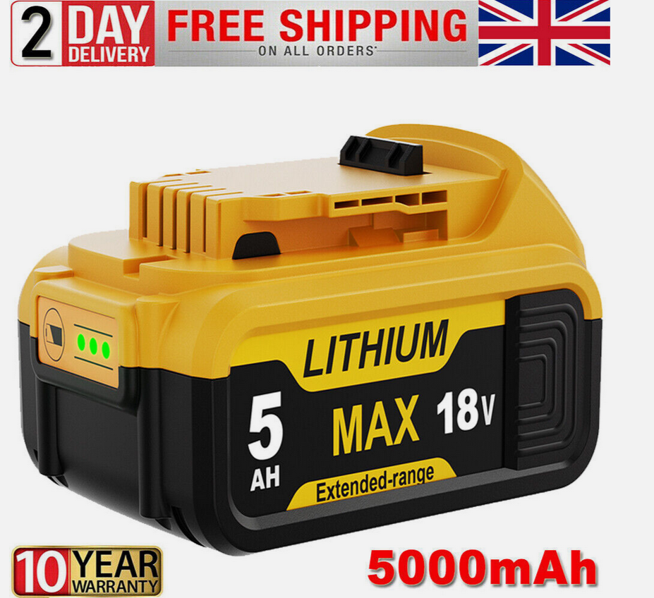 18V 5Ah Li-ion Battery For DEWALT 18Volt DCB184 DCB183 DCB182 DCB200 Slide UK