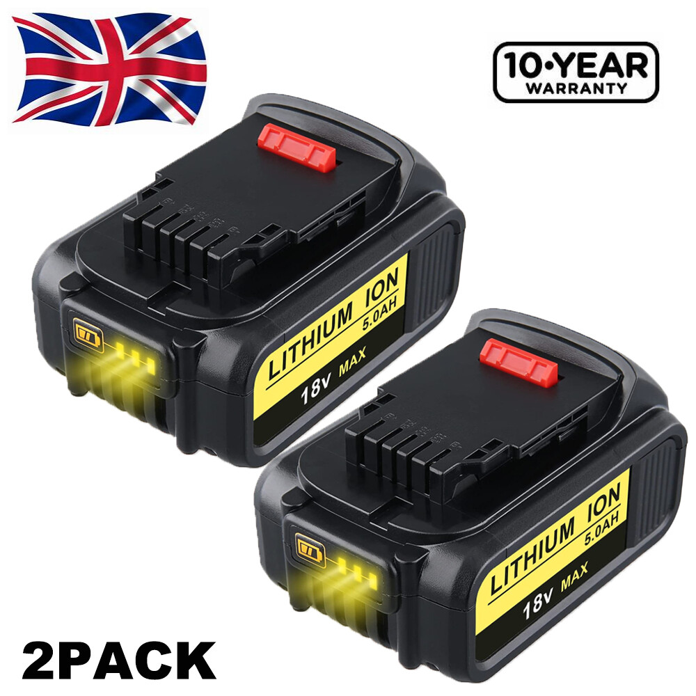 2x Battery For Dewalt DCB184 5.0ah 18v Lithium DCB182 Twin Pack-LED Indicator