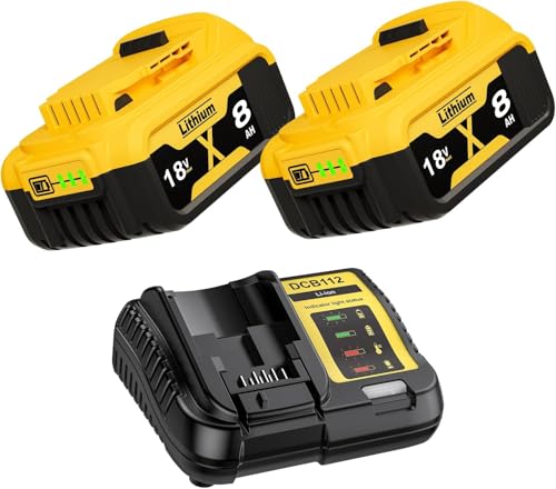2X 18V 8.0Ah/8000mAh DCB182 Replacement Battery with 4A Charger for DEWALT 18V Battery DCB182 DCB200 DCB184 DCB101 DCB107 DCB112 DCB105 DCB115 DCB203 | Fast Charging, Lightweight