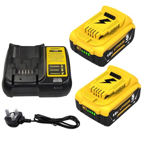 2x 5.0Ah Batteries and 4A Charger Replacement for Dewalt 18V Battery DCB184 DCB200 DCB180 DCB182 DCB101 DCB107 DCB112 DCB105 DCB115 DCB203 Applicable to Cordless Power Tools Battery with LED Indicator