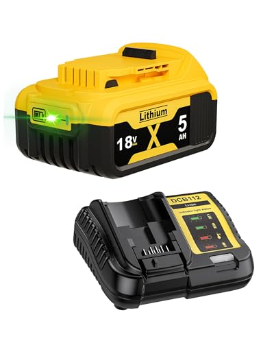 18V 5.0Ah/5000mAh DCB182 Replacement for Dewalt Battery+ 4A Charger Compatible with Dewalt Battery 18V XR DCB182 DCB184 DCB200 DCB184 DCB101 DCB107 DCB112 DCB105 DCB115 DCB203