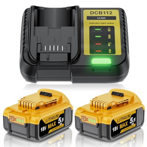 Replacement for Dewalt battery 18V 5500mAh - for Dewalt 18v Battery Charger Set Compatible with DCB180 DCB181 DCB182 DCB184 DCB185 DCB201 DCB204, for 18v Tools