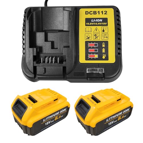 2 Pack 8.0AH Replacement for Dewalt battery 18V,with charger & LED Indicator,Replacement for DCB184 DCB182 DCB180 DCB200 DCB184 battery for power tools