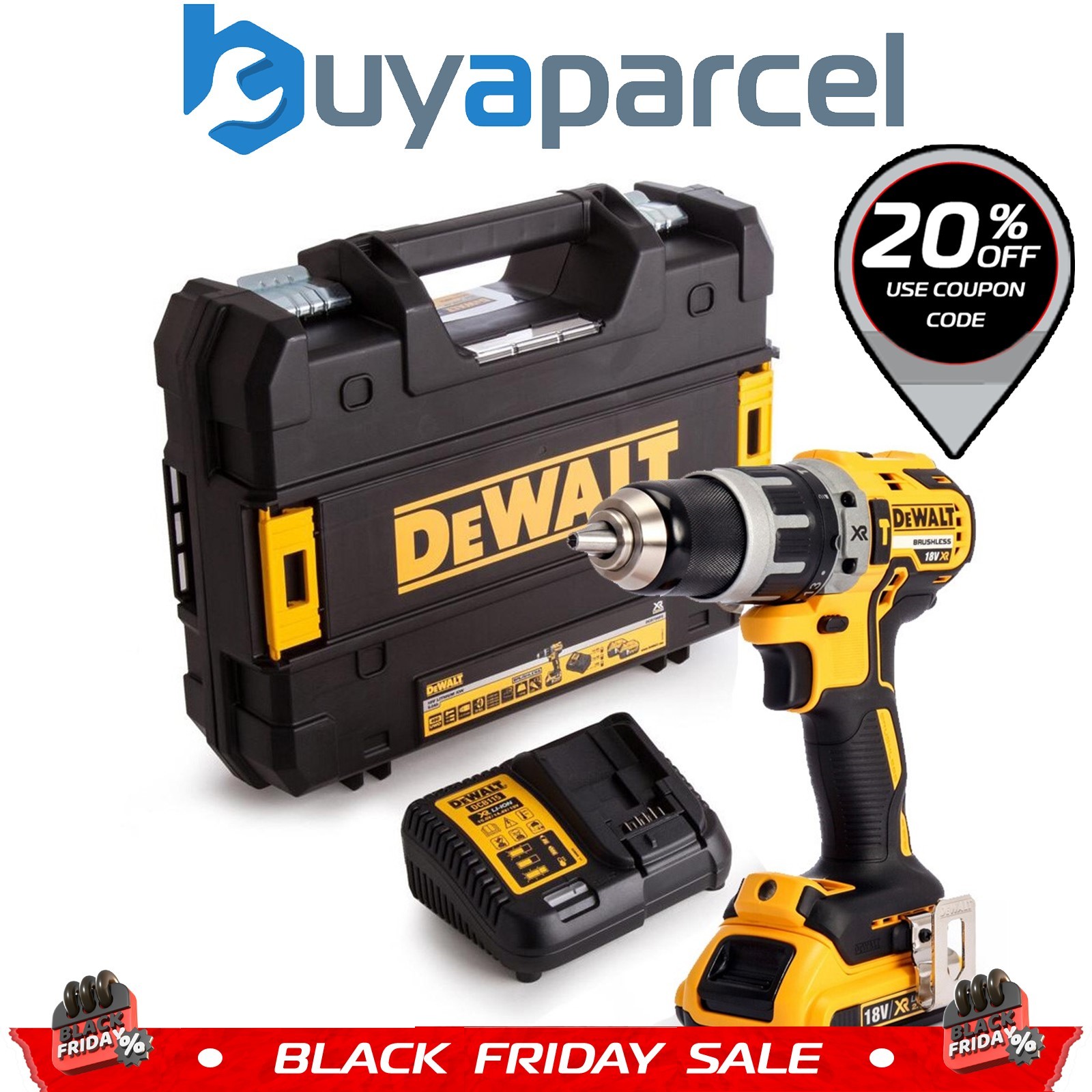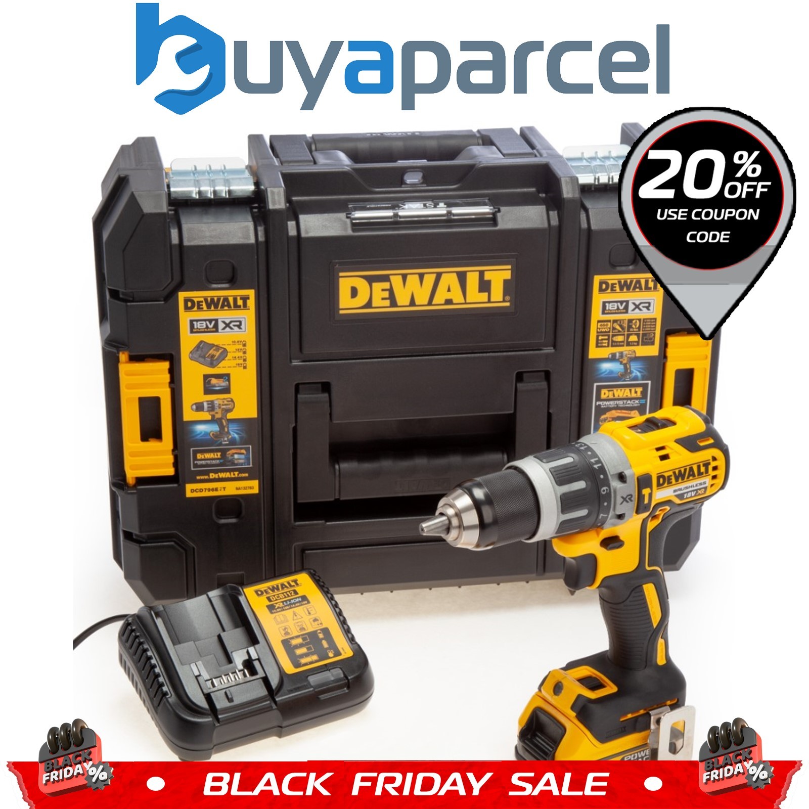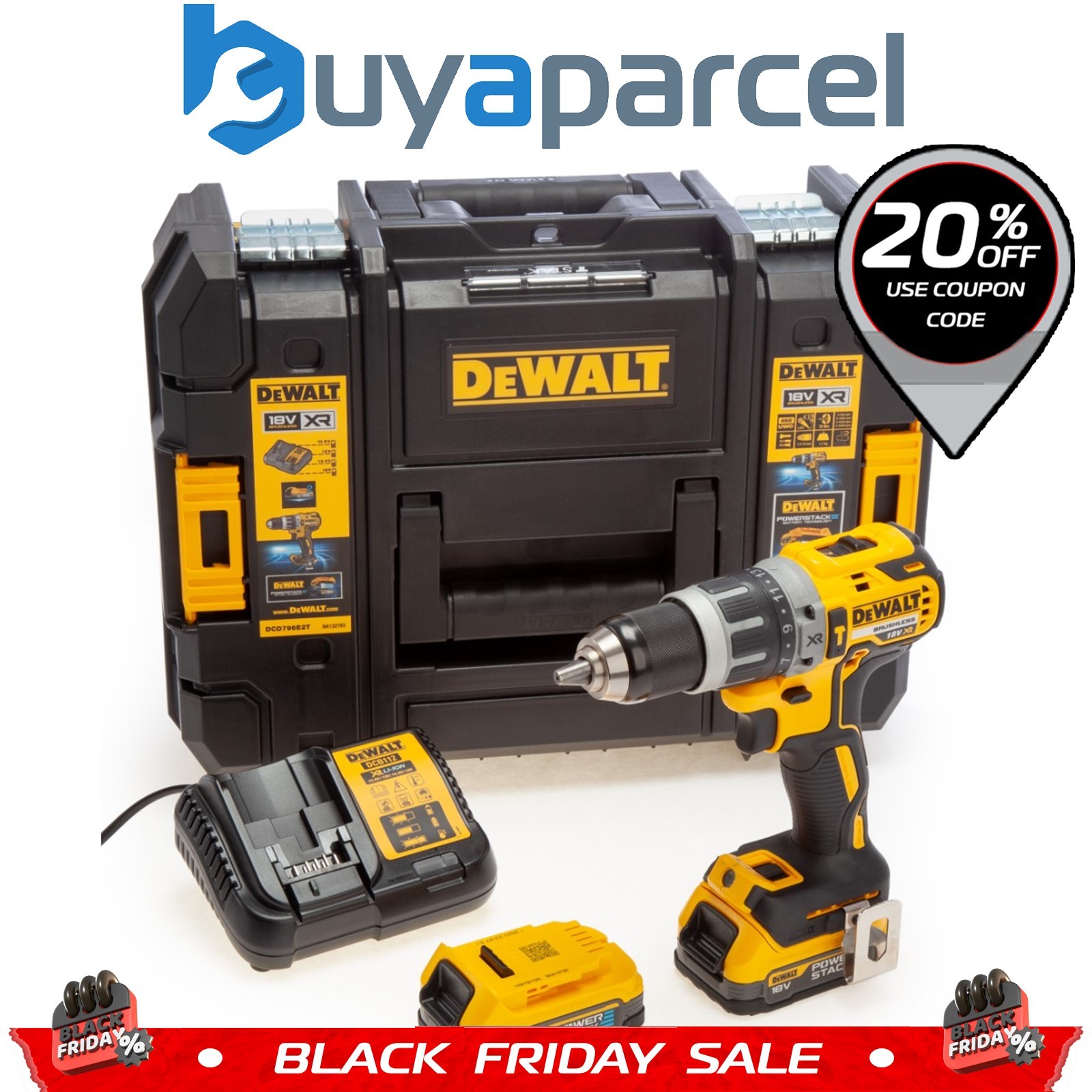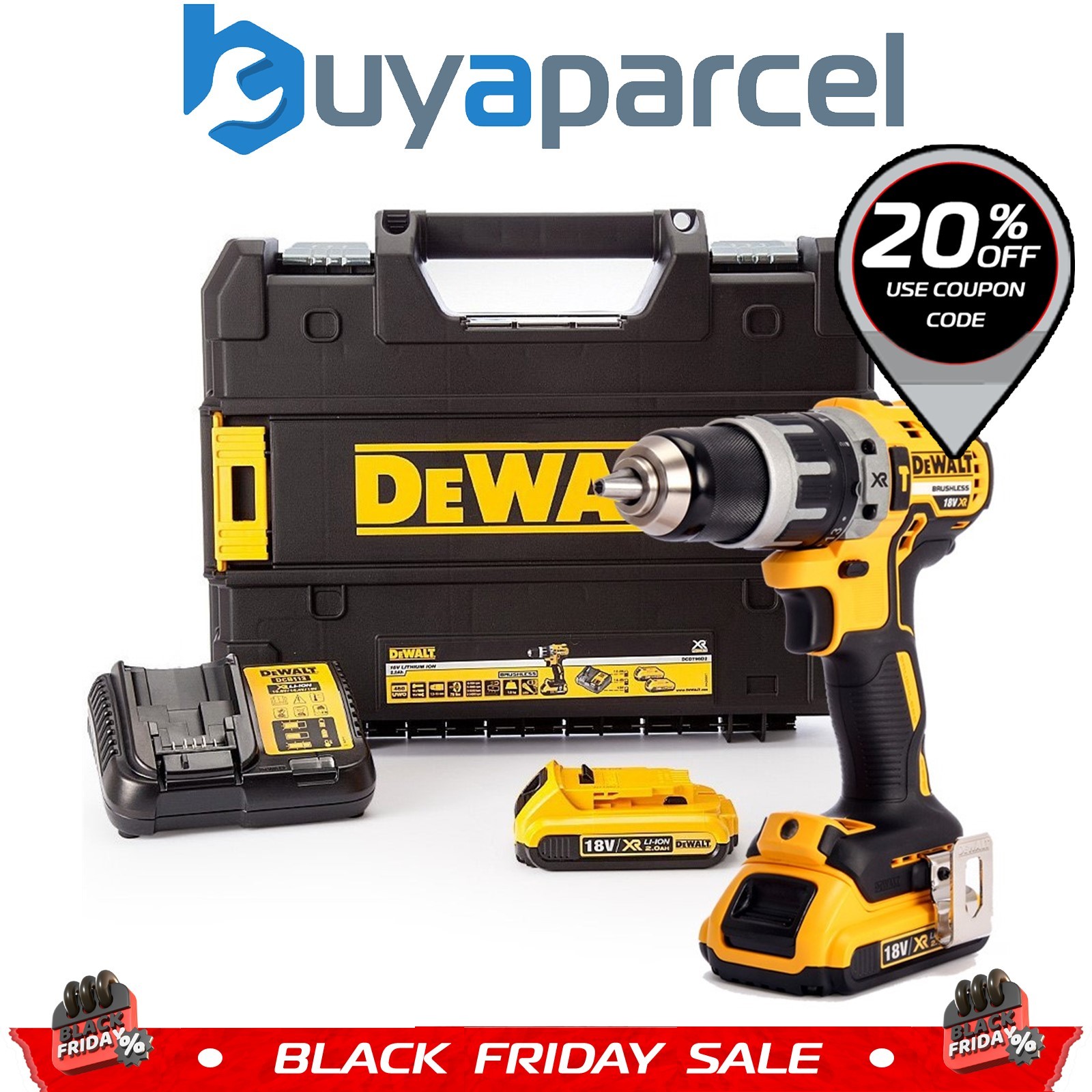 DeWALT 18V Brushless Hammer Drill Driver Kit DCD796D2-GB 2 X 2.0Ah Battery